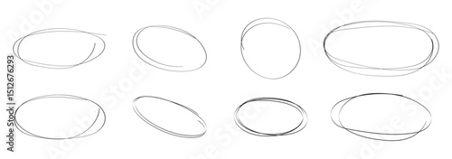 Red circle, pen draw. Highlight hand drawing different circles isolated on background. Handwritten red circle. For marking text, numbers, marker pen, pencil, logo and text check, vector illustration