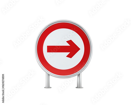 Red circle transparency background right arrow metal road sign isolated direction traffic round object