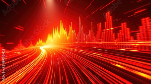 Red city skyline with light trails abstract background for urban blogs, transportation websites, traffic analysis, and modern city life presentations with copy space