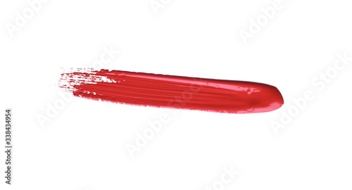 Red colored brush stroke paiting over isolated background, canvas watercolor texture, red lipstick smudge