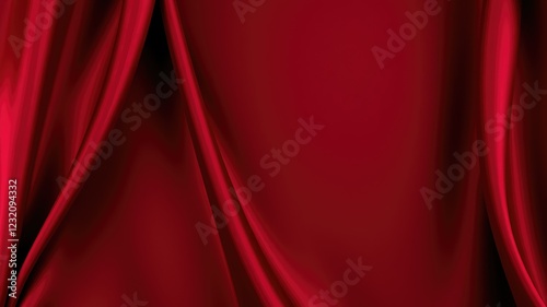 Red curtain background, Luxurious Red Silk Fabric with Elegant Folds