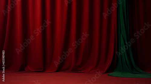 Red curtains. Curtains Backdrop Drapes Fabric Decoration at stage for show. Curtains background.
