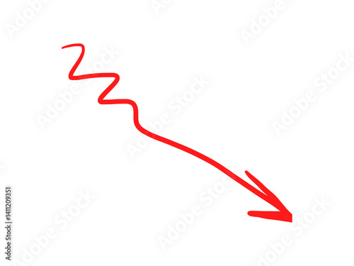 Red curved arrow with wavy body and dynamic hand drawn style.