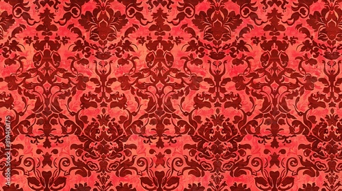 Red damask seamless pattern background wallpaper, textile, packaging, floral baroque pattern,