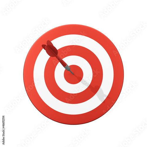 Red dart hit on dartboard on white background. Business target concept. 3D rendering and illustration with clipping path.