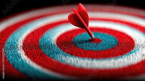Red Dart in Bullseye on Colorful Target Surface: Precision and Success Concept
