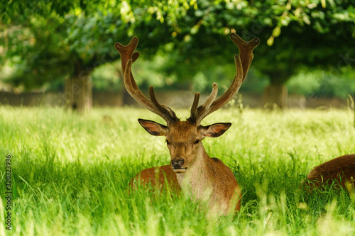 Red deer (Cervus elaphus) reasting in shade in spring in England