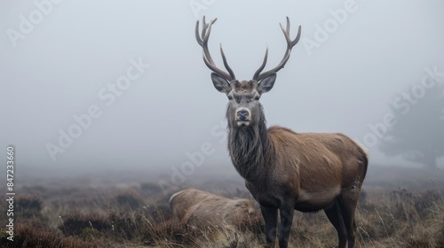 Red deer on a misty morning