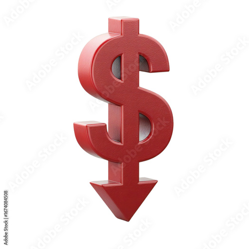 Red dollar sign with downward arrow indicating financial loss, isolated on transparent background