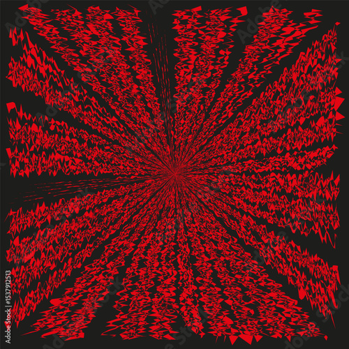 Red energy burst. Dynamic radial pattern. Exploding abstract shape. Vector impact zone.