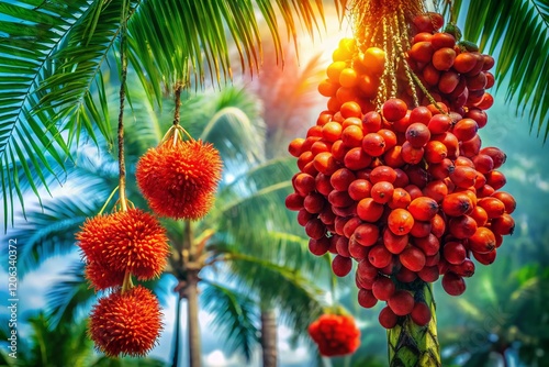 Red Foxtail Palm Fruit, Mauritius: Double Exposure Photography
