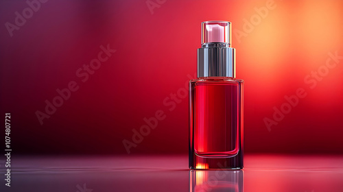 Red Glass Bottle with Pump on Gradient Background Illustration