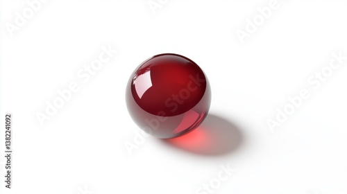 Red glass sphere reflecting light on a white surface with soft shadows showcasing design and color contrast, isolated on white background