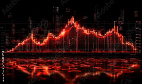 Red glowing stock market chart with data reflecting dramatic price fluctuations