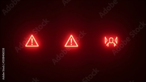 Red Glowing Warning Icons: Cyber Alerts and Security Notifications Concept with Empty Space for Customization in Photo Stock