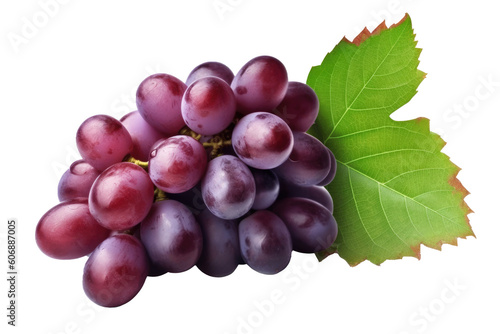 Red grape with leaves on transparent background. Generative AI.