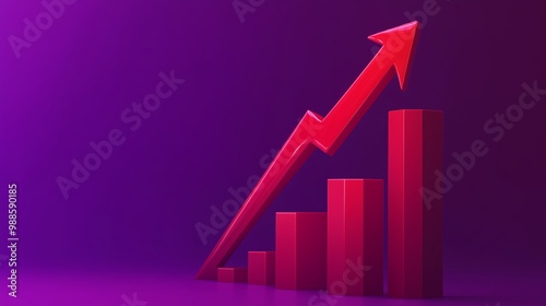 Red growth chart with rising bars against a purple background illustrating economic progress and business success