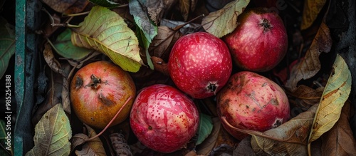 Red Guava Fruit And Rotten Leaves In The Garbage Box