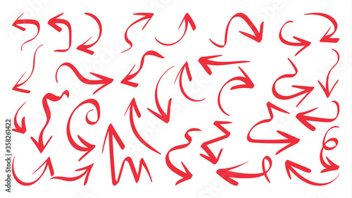 Red hand drawn arrow vector icons set. sketch arrow design for business plan and education.