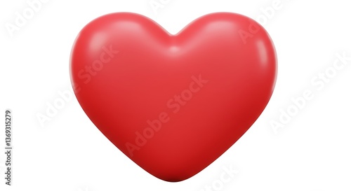 Red Heart 3d Rendering on White Background for Valentine's Day Design