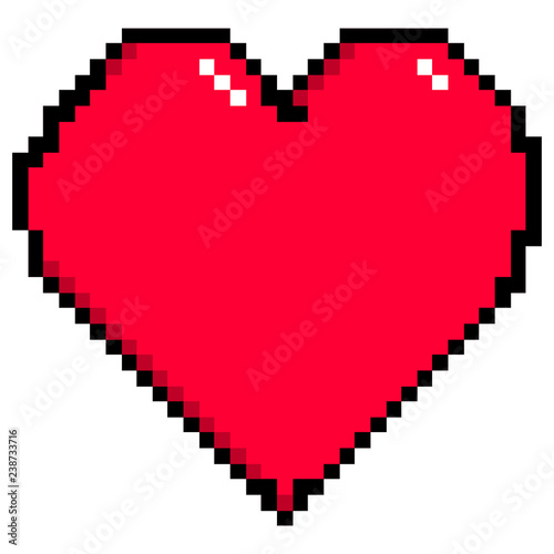 Red heart created in the style of pixel art. Design graphic element saved as a vector illustration