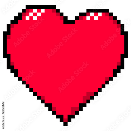 Red heart created in the style of pixel art. Design graphic element saved as a vector illustration
