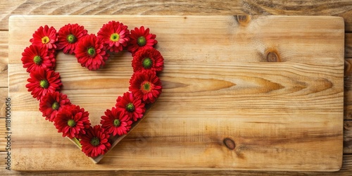 Red heart flowers on a wooden cutting board, hearts, red, hearts, red, natural elements, Valentine's Day, bouquet