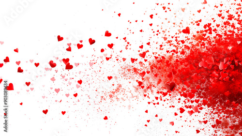 Red hearts explosion cloud, vibrant color confetti splash, love and emotion, heart particles, valentine day, isolated transparent background