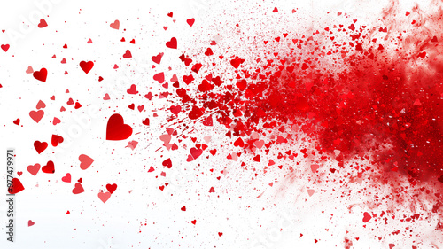 Red hearts explosion cloud, vibrant color confetti splash, love and emotion, heart particles, valentine day, isolated white background