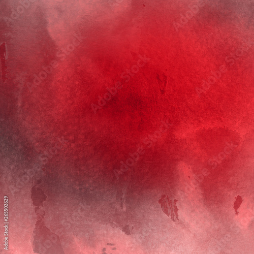 Red ink and watercolor texture on white paper background. Paint leaks and ombre effects. Hand painted abstract image.