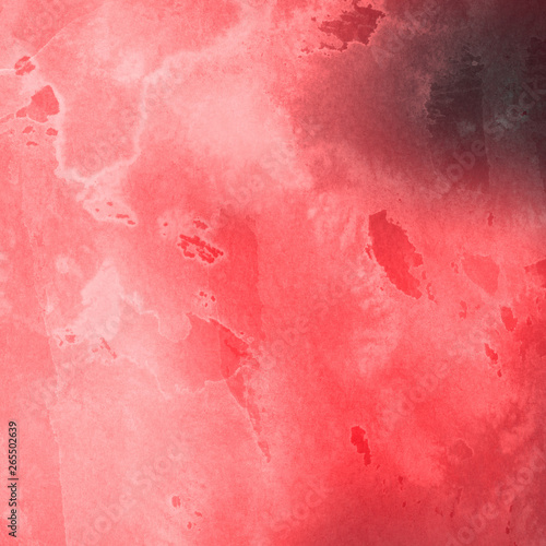 Red ink and watercolor texture on white paper background. Paint leaks and ombre effects. Hand painted abstract image.