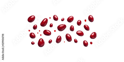Red jelly beans scattered isolated on transparent background