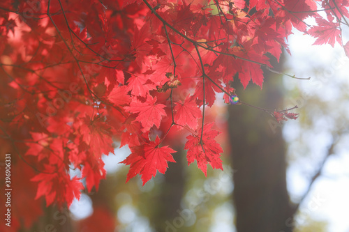 Red leaves of Korea maple. Natural autumn background. Bright maple tree.