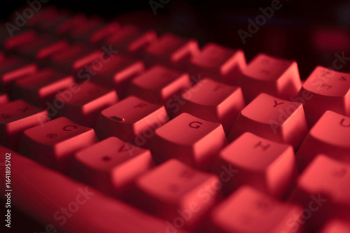 Red light illuminating computer keyboard keys