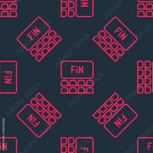 Red line Cinema auditorium with screen icon isolated seamless pattern on black background. Vector
