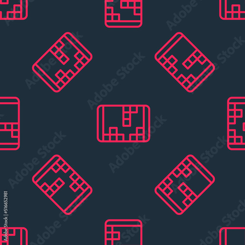 Red line Portable video game console icon isolated seamless pattern on black background. Handheld console gaming. Vector