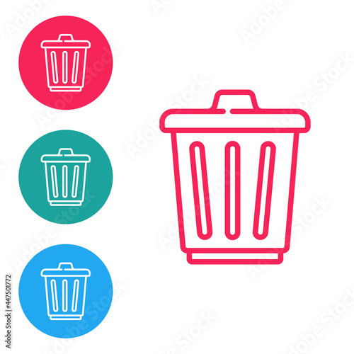 Red line Trash can icon isolated on white background. Garbage bin sign. Recycle basket icon. Office trash icon. Set icons in circle buttons. Vector