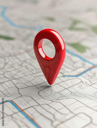 Red location pin on a detailed map, symbolizing navigation and travel.
