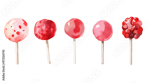Red Lollipops on stick watercolor collection isolated on white background