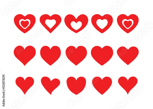 Red love icon with a heart symbol for romance, Heart shape vector icon as a simple red valentine symbol and universal love sign, vector illustration eps 10.