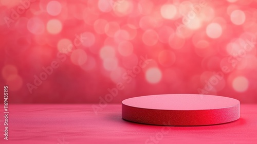 Red Luxury Pedestal with Blurred Bokeh Lights Background for Elegant Product Display and Holiday Themed Designs