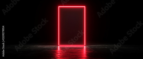 Red neon frame on dark background, showcasing blank space ideal for text or logo placement. Modern, minimalist design, symbolizing technology or energy.