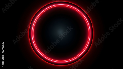 Red Neon Light Circle on a black Background. Futuristic Template for Product Presentation
