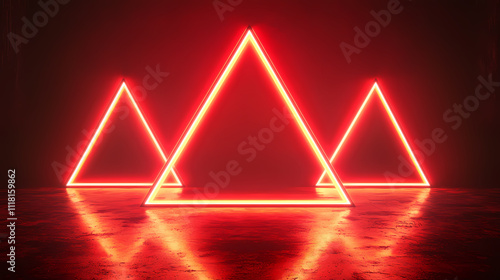 Red neon triangles futuristic stage, futuristic, cyberpunk. Aether. Illustration