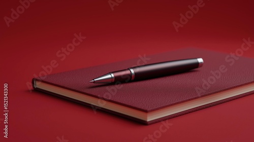 Red notebook with a black pen resting on top of it. the notebook appears to be made of leather or a similar material and has a smooth cover.