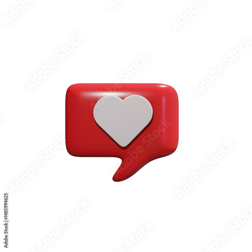 Red notification 3d illustration with a white heart symbol suitable for social media announcements, love messages, romantic notifications, relationship updates