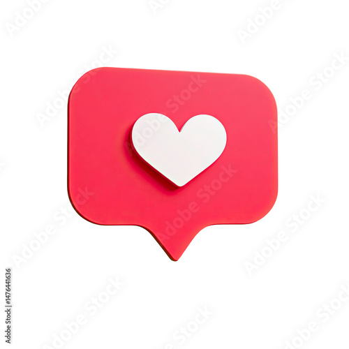Red Notification Bubble with White Heart Icon on transparent background. Heart png, Heart 3d icon, Heart icon.
