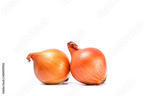 Red onions isolated on a white background. View from above