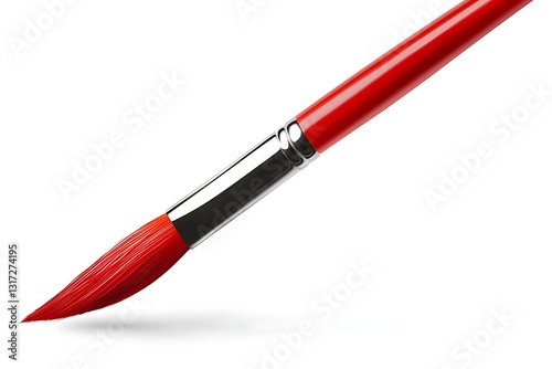 Red Paintbrush, Artist Supply, Realistic 3D Render, Isolated on White Background