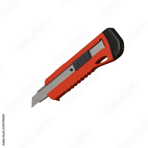 Red paper knife isolated on white background. 3D rendering of excellent quality in high resolution. It can be enlarged and used as a background or texture.